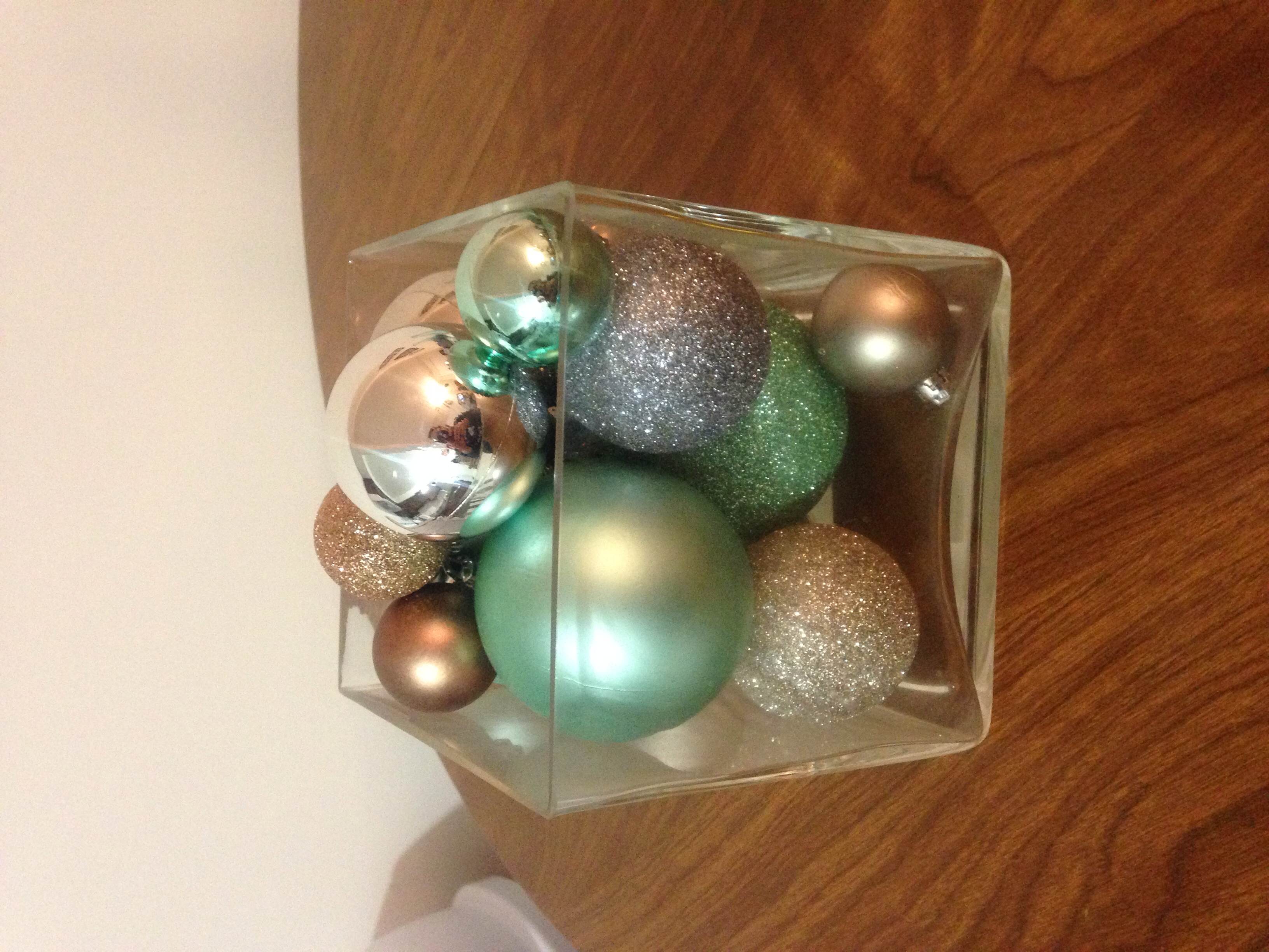 We're getting married in May, and our main color is a minty blue green, accented with blush and ivory flowers. I had been planning on doing centerpieces of mostly flowers and candles, having three different to alternate on the tables. However, I found Christmas bulbs in the exact shade of our color in matte, shiny and glitter finish mixed in with bronze/gold and silver bulbs, which all look great together. I'm wondering if I can use the combo in vases for some centerpieces to glam up the hall but I do not want it to scream Christmas. Obviously they are ornaments, and I'm fine with people knowing that, I just don't want it to look out of place or strange since it'll be spring. What are some thoughts on this?