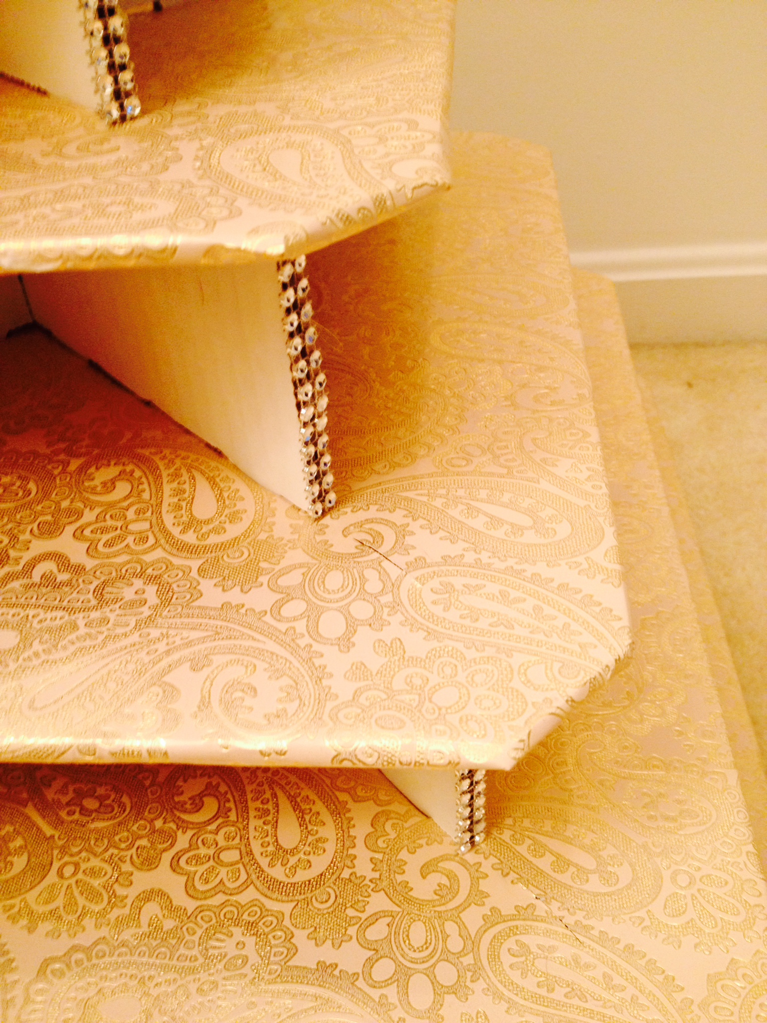 I have a gorgeous 50+, 5 tiered cupcake stand for sale - $30. It is cardboard but is covered in an ivory/peachish/gold paisley paper and has crystals on the edges. It was used once and is in fabulous condition. It does come apart so I can ship it.