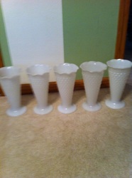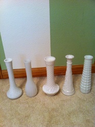 61- white milk glass vases (varying styles/sizes) $2 each5- large white milk glass vases $5 each