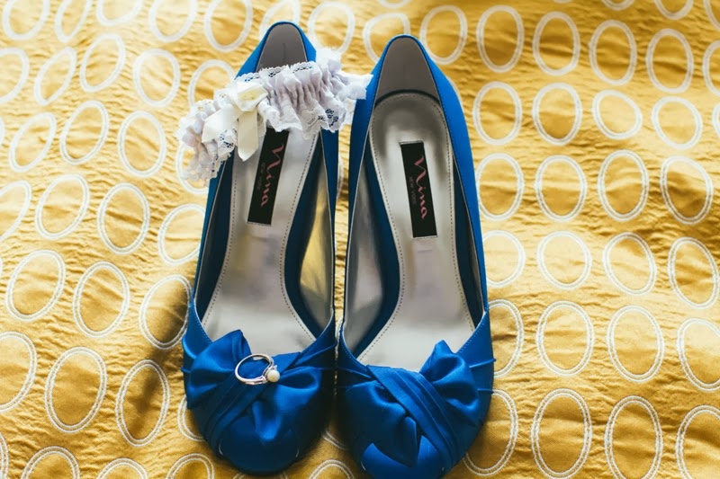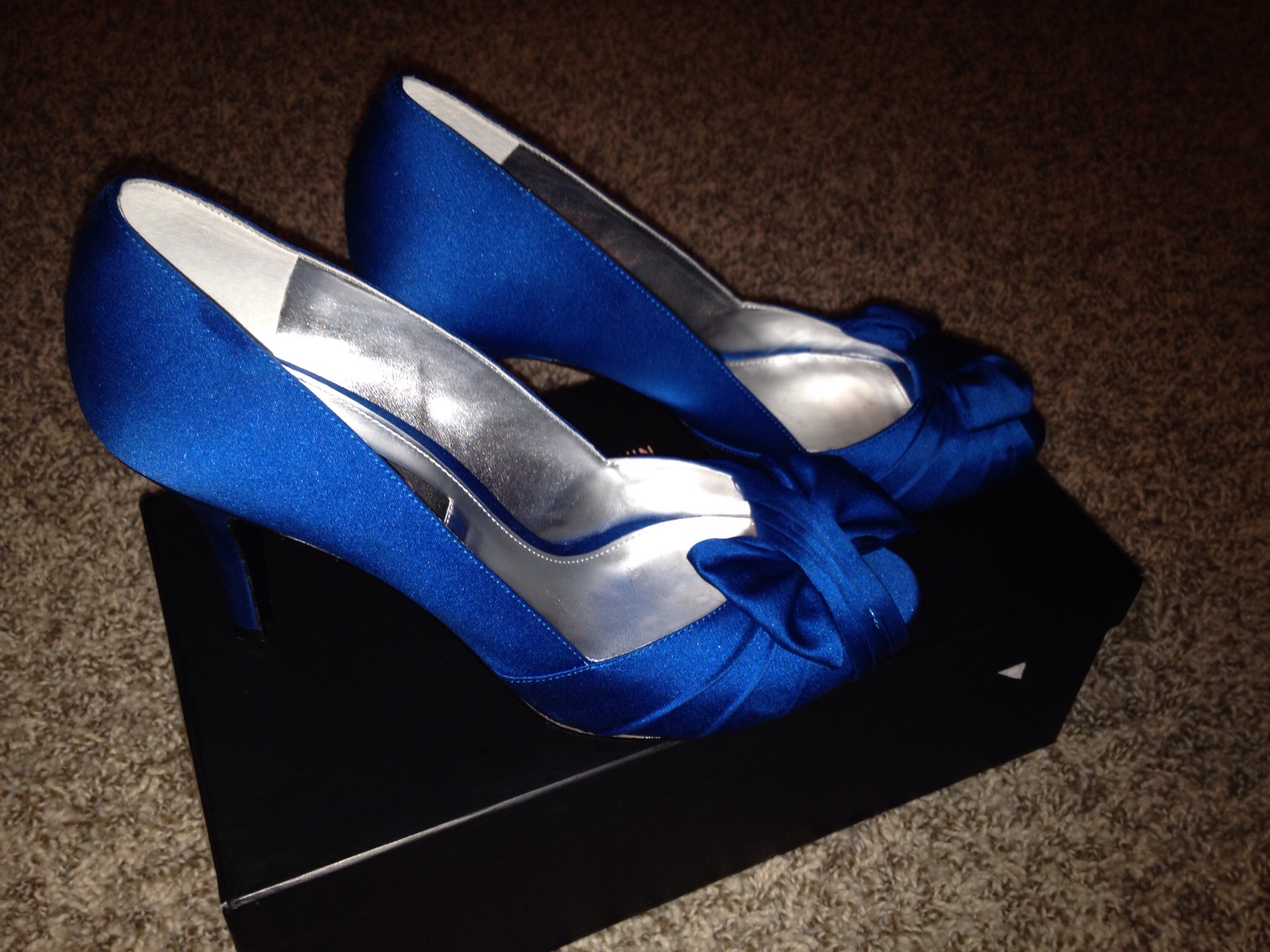Nina heels, size 7 1/2. Azul blue. Worn for ceremony only. Minor scratches on sole of shoes. Original box. $35.