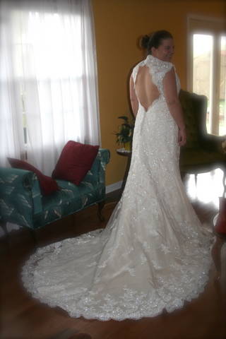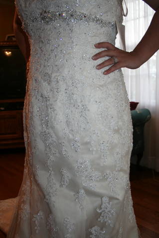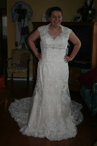Original size 16, altered down to size 12 in smallest places.  (Tacked and not cut except for making keyhole smaller). I'm 5'4 and wore 3 inch heels.