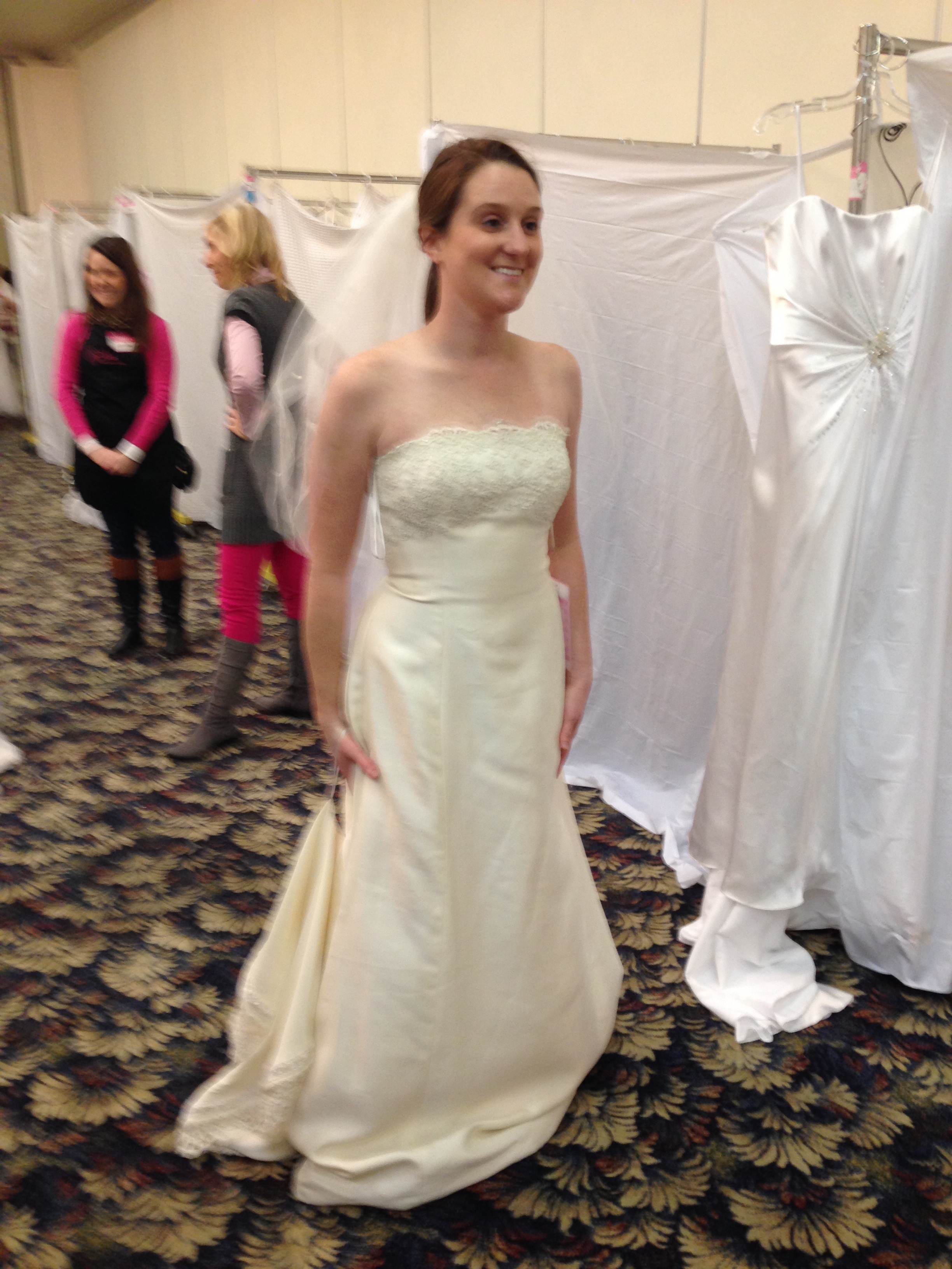 I went to a bridal show and tried on probably a hundred dresses and settled on a couple, and then bought one that I thought I was in love with. Now, I can't get my mind off one of the other dresses I tried on but I have no idea who the designer is or where to find the dress. Does anybody know/recoginze the dress? I'd really like to be able to find it and would SO much appreciate it if anyone could give me any information!