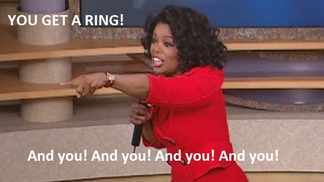 I did send my FI a bunch of texts while he was working saying "look at all of the things my ring looks good with"  and attached a picture of me petting the cat, holding a glass of wine, holding the remote... hahah! :)