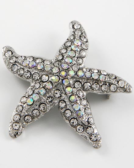 F/S Silvertone Rhinestone Starfish Brooch NEW NEVER WORN