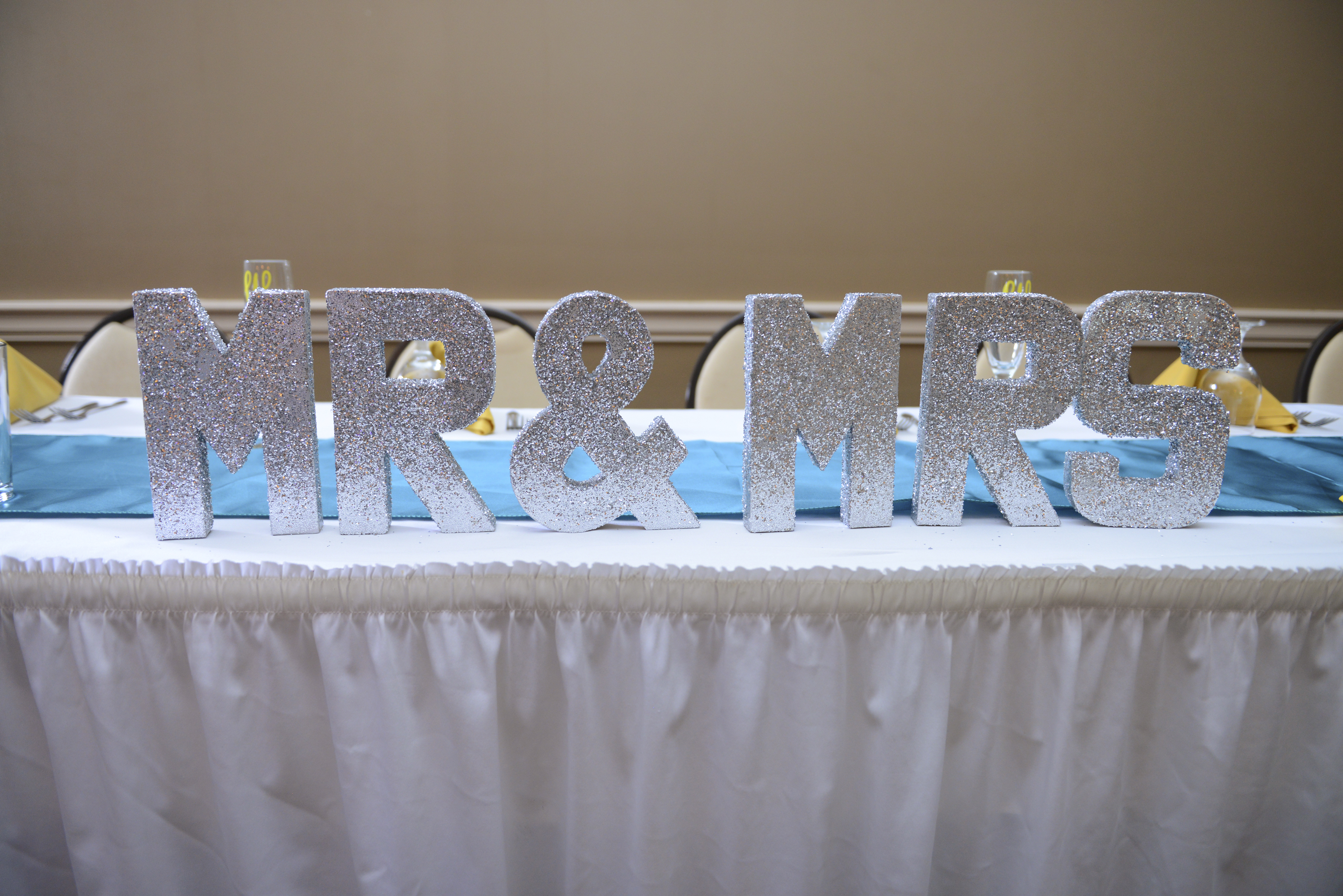 Mr and Mrs silver glitter letters great for decorating at the reception