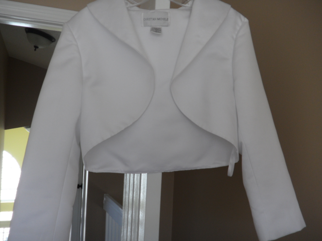 White satin jacket size 14, never work with tags - $50