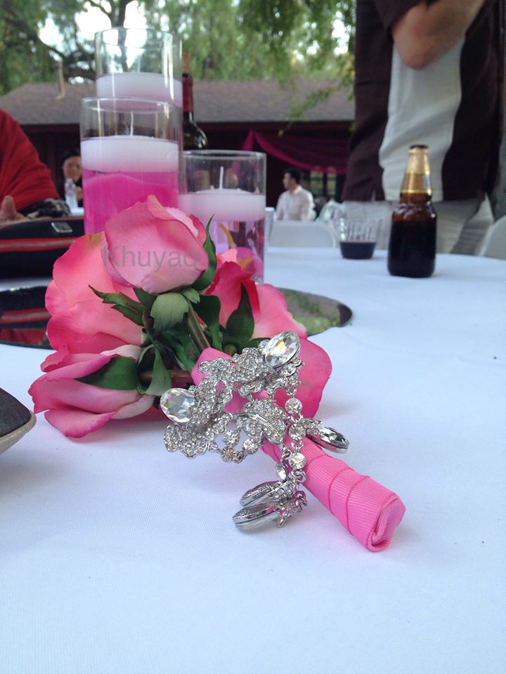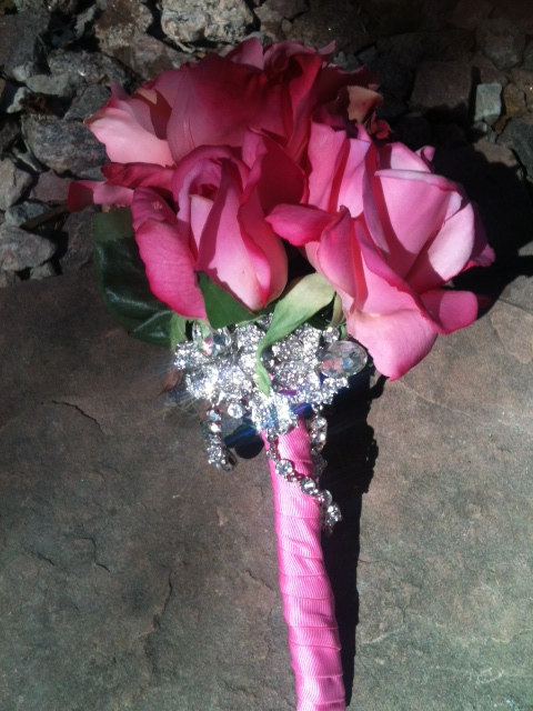 Crystal Brooch Bouquet With Real Touch Roses