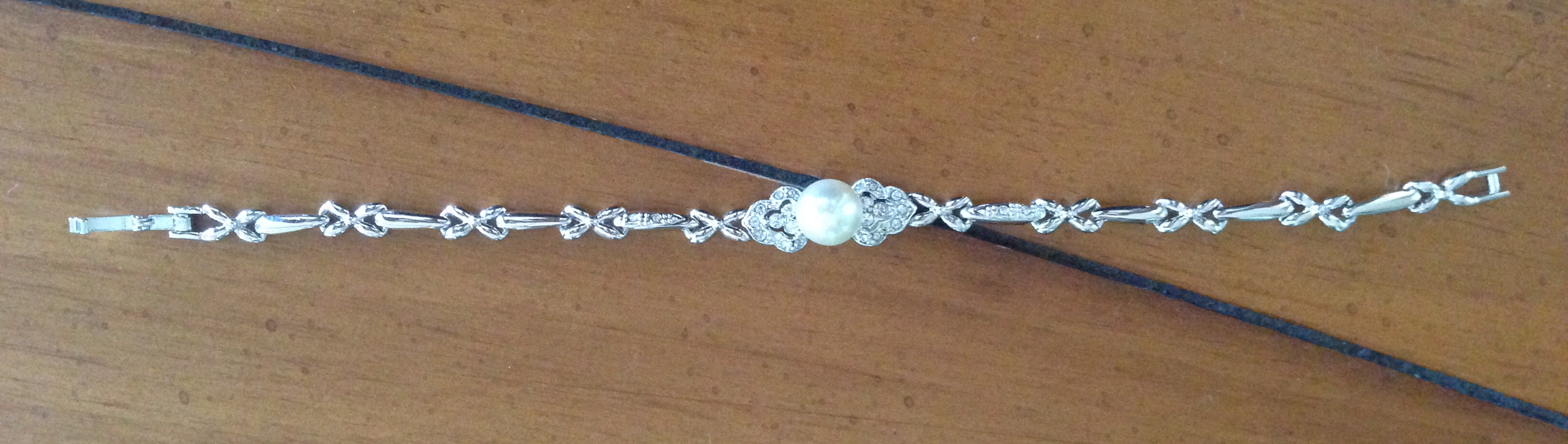 Bridal bracelet, ivory pearl, crystals/rhinestones.  Worn once on the big day.