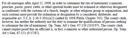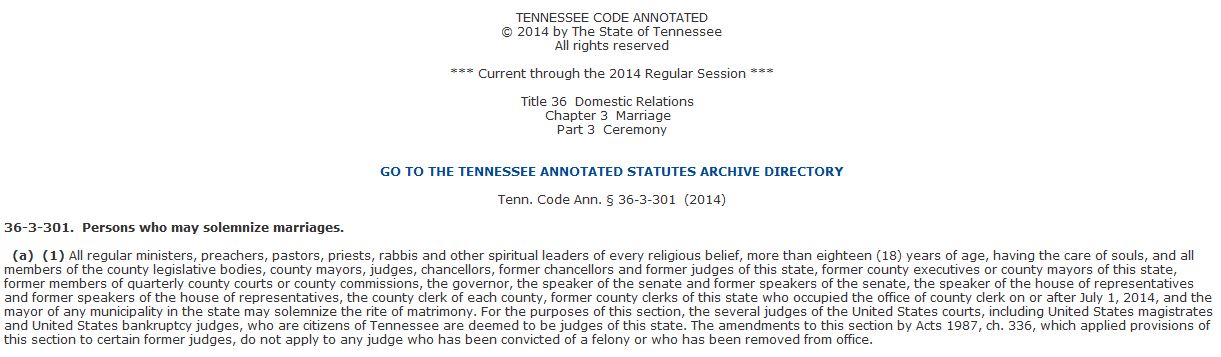I need help! I am getting married in Memphis, TN. I can not imagine anyone besides my big brother officiating my ceremony. I have looked online and found a lot of online ordainments. I just want to know if anyone in Shelby County or Tennessee has done this and is it legal? I don't want to do a City Hall wedding before the actual wedding...Any and all advice is welcomed! Thanks in advance!!