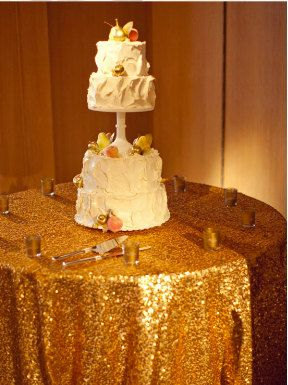 Last but not least I have 2 108"-round amber gold sequin tablecloths.