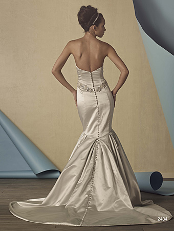• It is an Alfred Angelo dress and I tried it on in Platinum.  I absolutely loved the color and the dress, but not the back.  I have someone working on a price via pictures and email and a meeting with another designer next week.  The back may not be a deal killer but if someone can come close I will go with having it made.