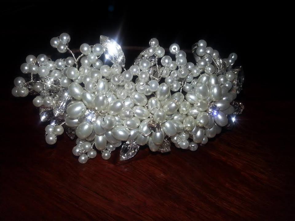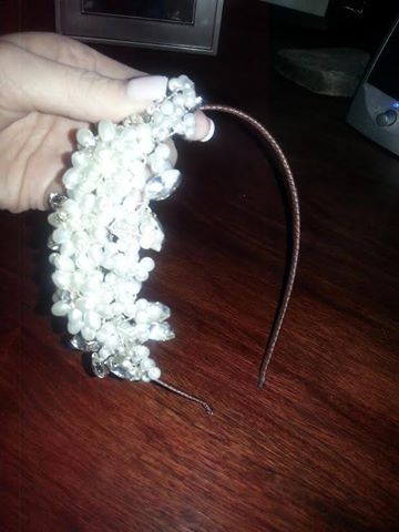 2. Custom Head band with Rhinestones and Pearls with brown band (Paid $150) Asking $50