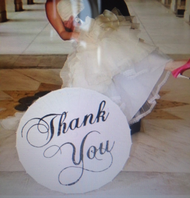 FS, wedding parasol.  Hand painted Thank You, white with black letters and bamboo handle.  Very nice for wedding photos, thank you cards!  $20+shipping