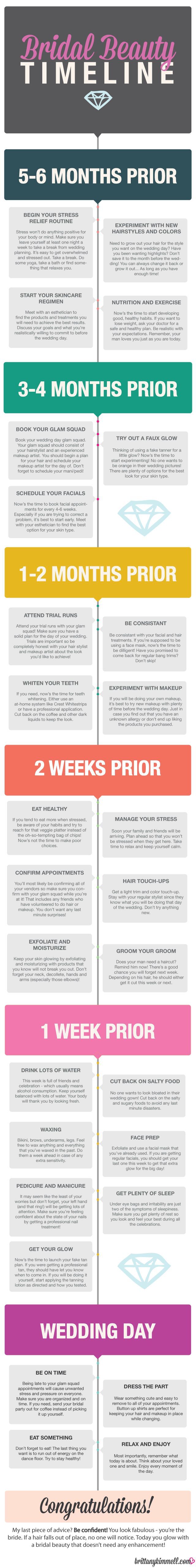 You really don't want to change anything up a month out because you don't know how it'll affect your skin, and it might be too close in time if there's a problem. This is a good skincare timeline.