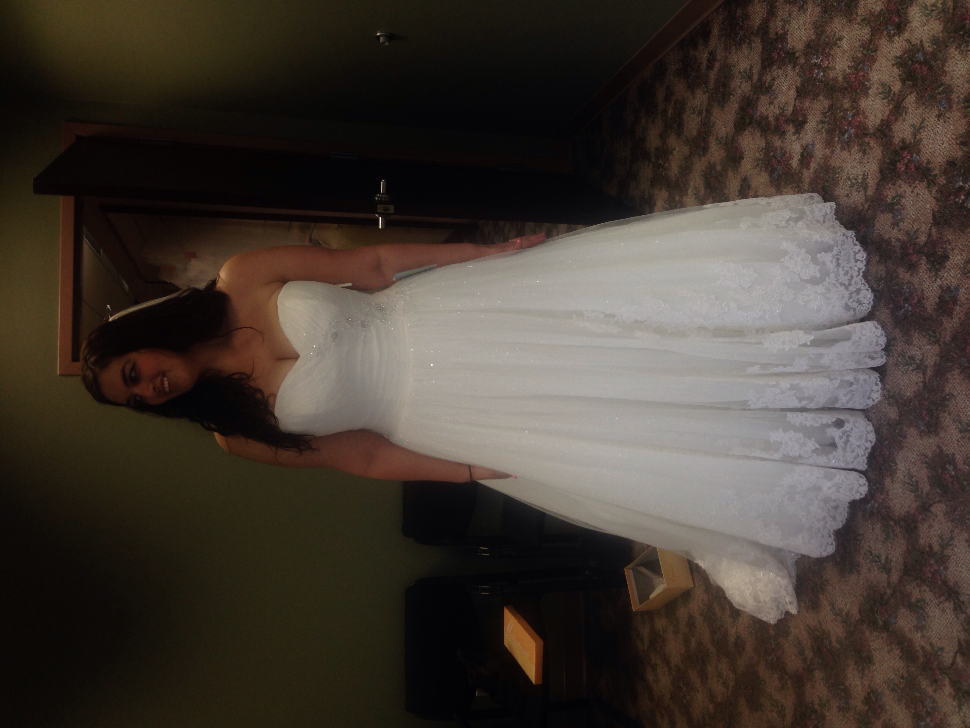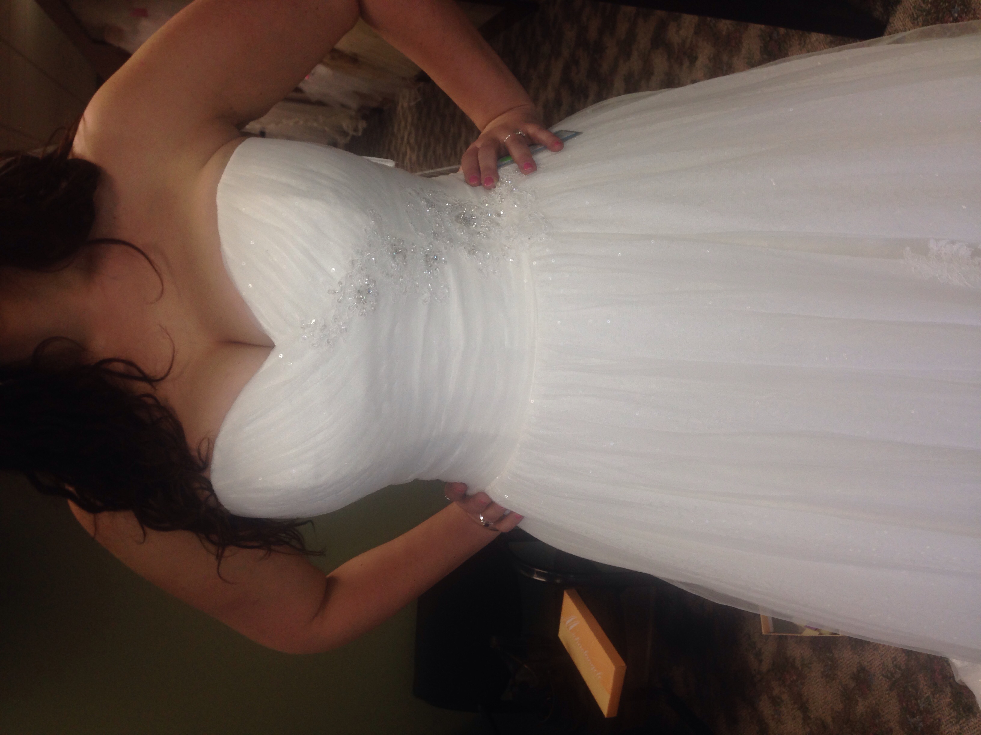 You can only kind of tell in the pictures--my dress has a hidden layer of sequins that shimmers gorgeously when the light hits it. Our ceremony is outside, so my dress will be glimmering all over the place, which is why I'm totally clueless on how to accessorize without looking like some bridal nightmare! Also, excuse my derpy face--my mom loves to take pictures when no one is paying attention.