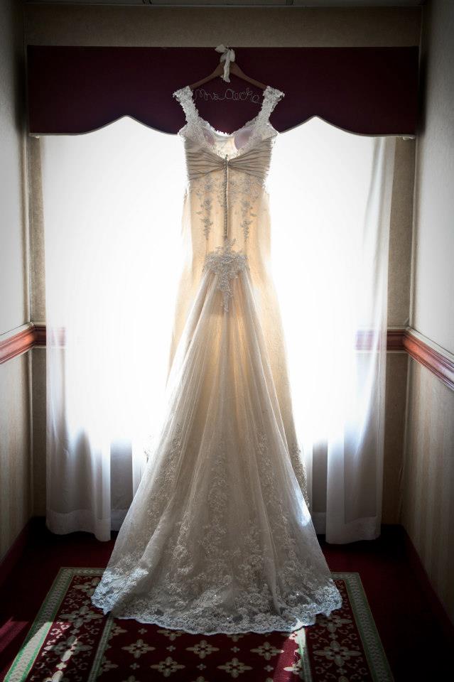 I've decided to take the plunge and sell my dress. I had it cleaned and preserved after the wedding and now it just sits in a big fancy box with no one to enjoy it. I bought it for $1700, had the bustle done, underlay, and cups put in. It was a size 14 originally, but I had it altered down to about a size 8-10. I have included some pictures below (including the model photo) and have several with me in the dress, just didn't want to post those to the site-but am willing to show them privately (I'm a teacher and just super private about what I put online as far as photos of myself). I was absolutely in love with this dress and just want someone else to enjoy it as much as I did!