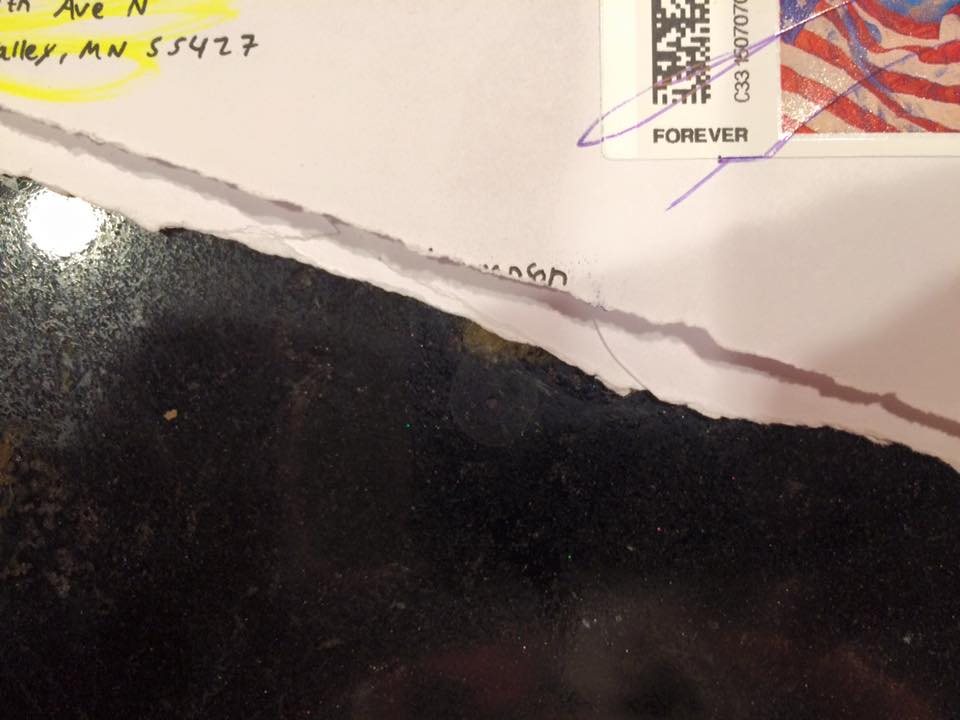 Go out the front door on Tuesday (expecting a package), guess what I find? The envelope.