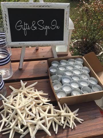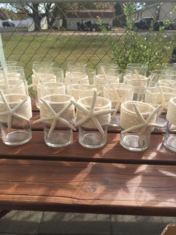 Beautiful nautical wedding decor set for sale! I got married in Yorktown, Va in September and would love to sell my practically brand new items to someone else! Included in the set: 26 nautical roped wrapped starfish vases, 6 large navy and white striped ribbon vases (extra ribbon included), 6 small anchor navy and white striped ribbon vases, vintage white gift and sign in chalkboard, 30 count starfish (assorted sizes), 25 glitter candle votives (candles included). Would like around $400 for whole set. Price negotiable! Will also sell items individually. 17 white lanterns available for sale separately w/ white candles included! Pick up only. Price negotiable! Courtneyrsee@gmail.com
