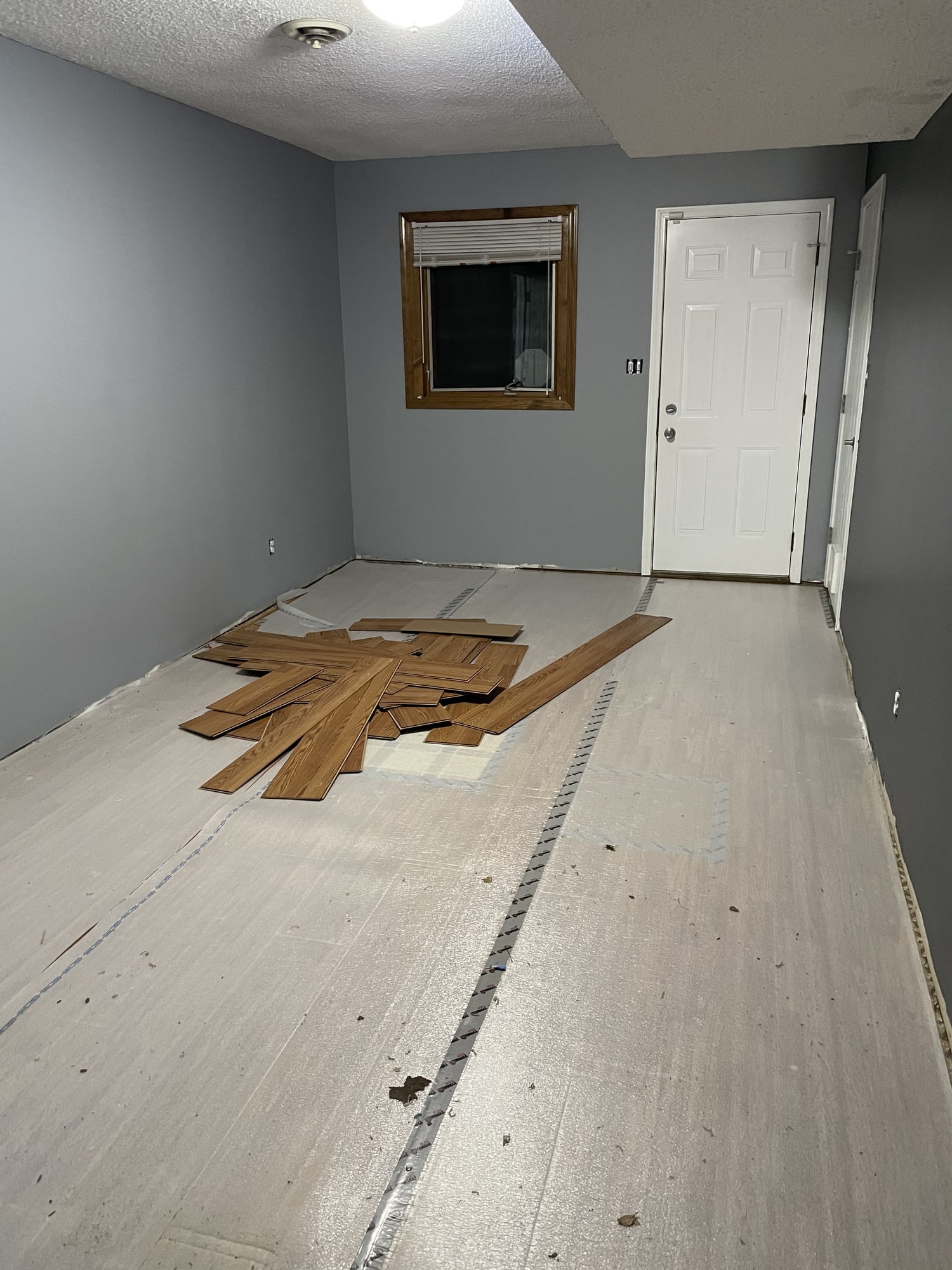 This is the room after I pulled up the laminate. Can you imagine this whole room with that floor?!