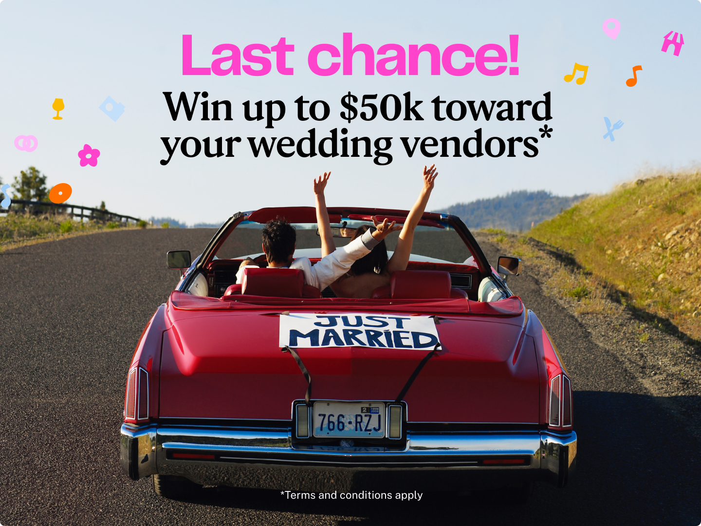You’ve still got a shot—enter by 2/10/26 and you could win up to $50k to use toward your wedding vendors from The Knot Vendor Marketplace.*