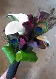 I need some creative ideas for my BM's bouquets. I have a low budget for flowers so I'm looking for an alternative. My bouquet will be ivory and purple, calla lilies and fressia with peacock feathers. Any ideas for the ladies? I was thinking peacock feather fans (which would make for sume interesting pictures), maybe clutch purses incorporating peacock feathers. What do you think?