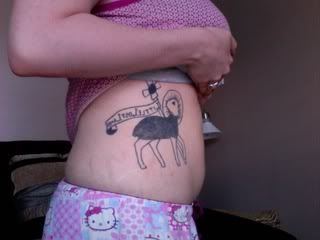 • It's like horse legs, an Emu body, lion face.....a sword in it's back (because obviously someone is stabbing you in the back when they say they like you're tat) and I think in the end it just means she spent too much time eating with her fingers at medieval times.