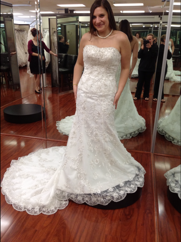 Luckily my bridesmaid who came along is a size 8, so I asked her to try it on so I could see it on someone. It was breathtaking! I tried on a dress in a similar fit and loved the shape on me, so I bit the bullet and ordered the dress. Now I can't stop wondering if I made the right choice... what do you think?