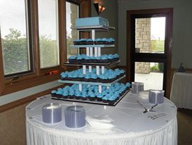 My dad made this for my wedding. It's extremely sturdy and made of finished wood. It held 250 cupcakes.