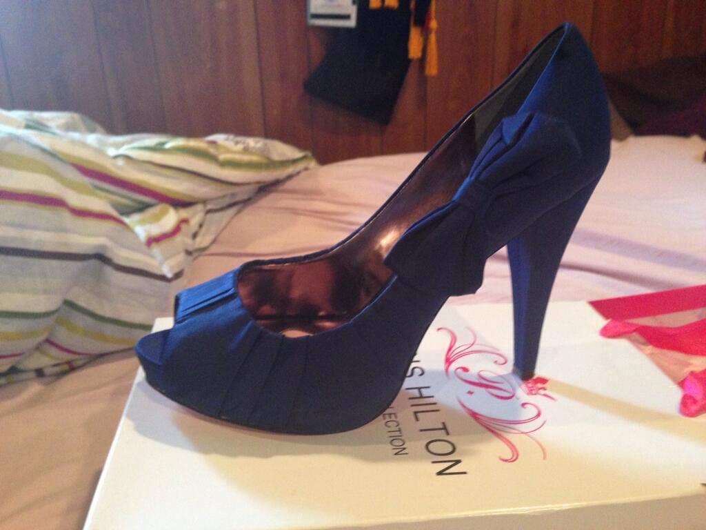 Hello lovely brides! I purchased these size 11 Paris Hilton heels about a year ago, thinking I could wear them on my wedding day. After twisting my ankle while playing sports, I know I just can't wear them. The heels have a peep toe, a hot pink/glitter sole, and a beautiful bow detail on the side. They are made really well and would make a great "something blue" for your wedding. I tried them on once, and they come from a smoke and pet free home. There is a 1 inch platform with a 3 inch heel. I paid $100 from Zappos.com, but I'd let them go for $70 plus shipping. I'll also accept a reasonable offer. PM me if you are interested!