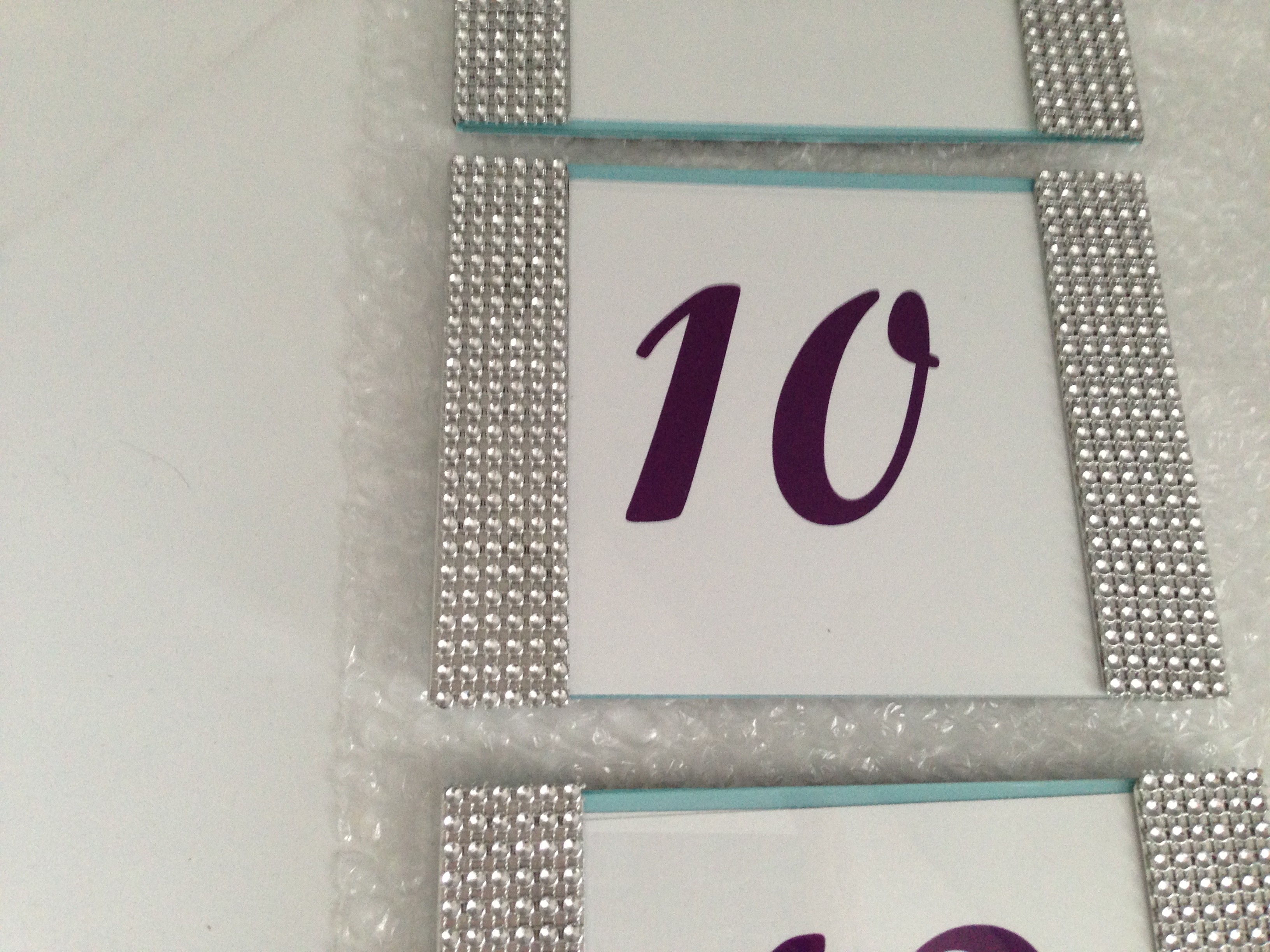 20- 5x7 crystal table number frames (comes with purple numbers and light grey table numbers if you want them) $50