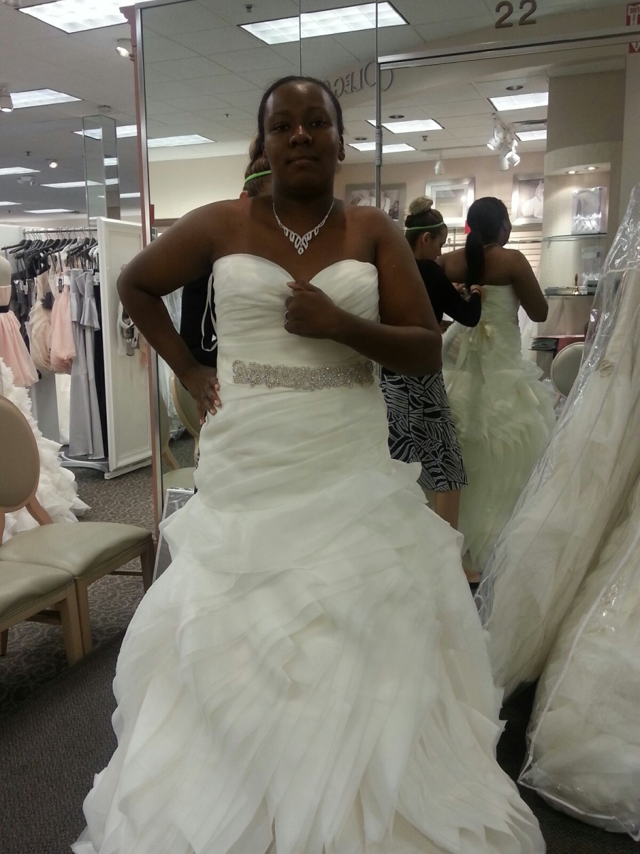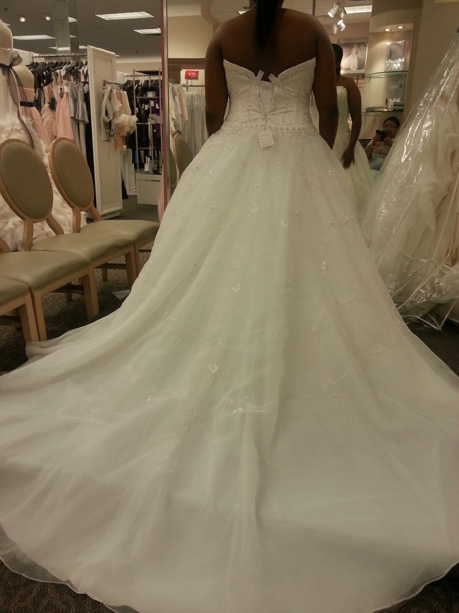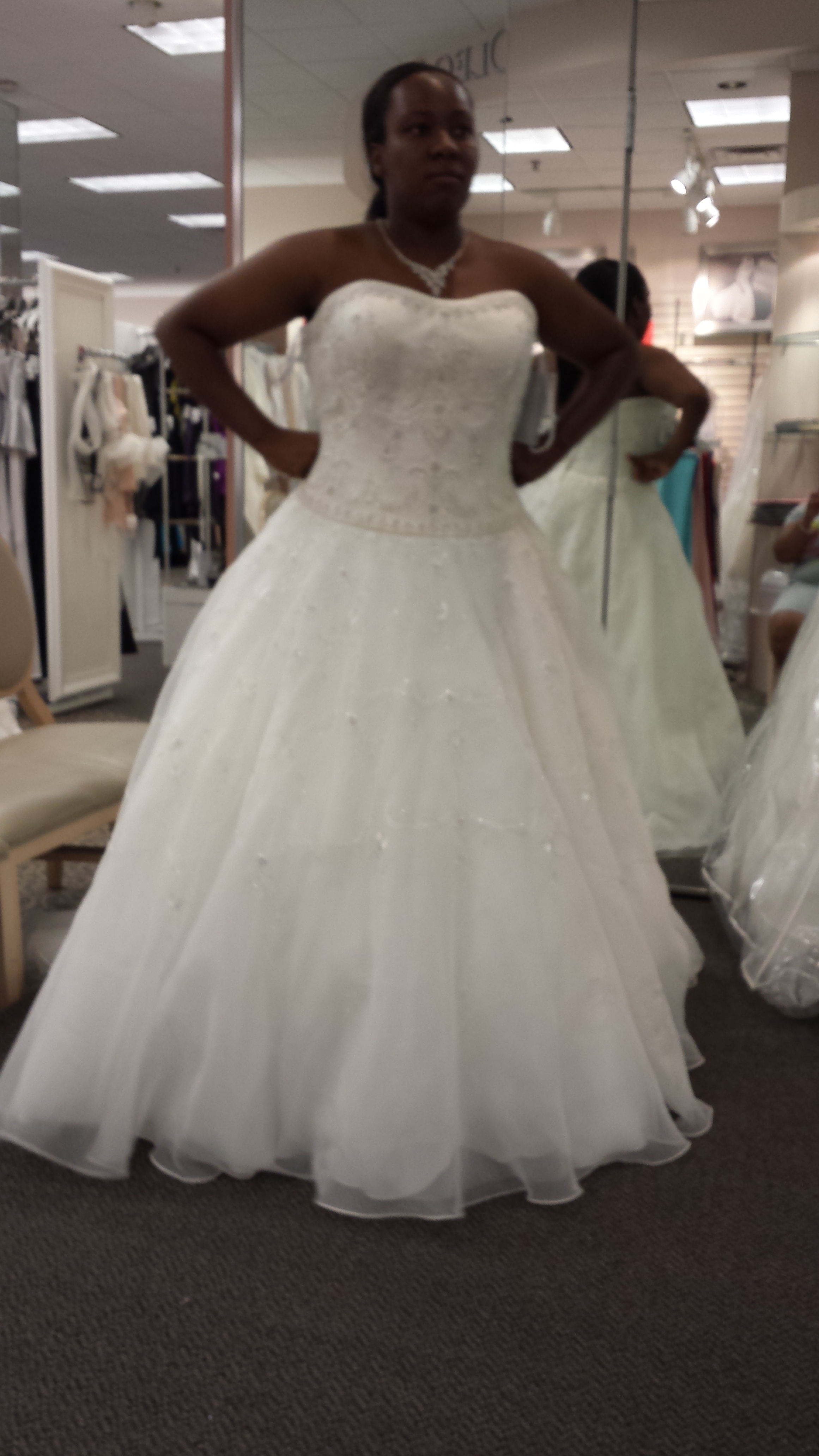 I dont know if you ladies remember when I posted about wanting a new dress. Well I decided not to go to another bridal store since it would all depend on my bridal party. Needless to say, everybody didnt order ;last friday as they were supposed to. But anyway, I had decided to just try to find something else at DB and just exchange and pay the difference if I had to. So when I called to make my appt. and explained what I wanted to do, of course everything was cool over the phone. So I went to my appt.and tried on several dresses. I thought i wanted something more fitted with a dropped waist until my MOH begged ne to try on this other gown. OMG....I ended up loving that gown. When it comes time to do the exchange, the manager comes to me and says "Well unfortunately, since the gown you have is being discontinued so it can't be returned. WTH....the dress wasnt being discontinued when I bought it. So she tells me that I need to go back to the DB where I originally bought the dress because the manager is the one who has the final say whether or not they will allow you to return the dress. So im like, what difference does it make if I bought it form this store or the one down the street.So im bout to make a trip to this damn store and hope I don't have to go "MADEA" on em lol...But anyway, here's a pic of the two dresses i liked the most. The first one i liked alot, the second one I fell in love with. Sorry I forgot to take a pic of the back of the first one. You can kinda see it through the mirror...