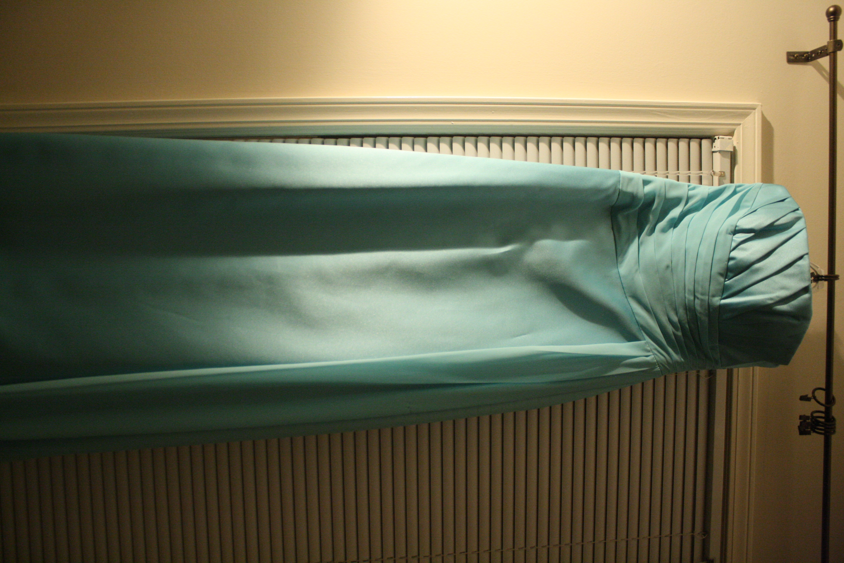 http://www.davidsbridal.com/Product_Strapless-Satin-A-line-with-Pleated-Chiffon-Bodice-F13573Size 6 in Pool (blue)