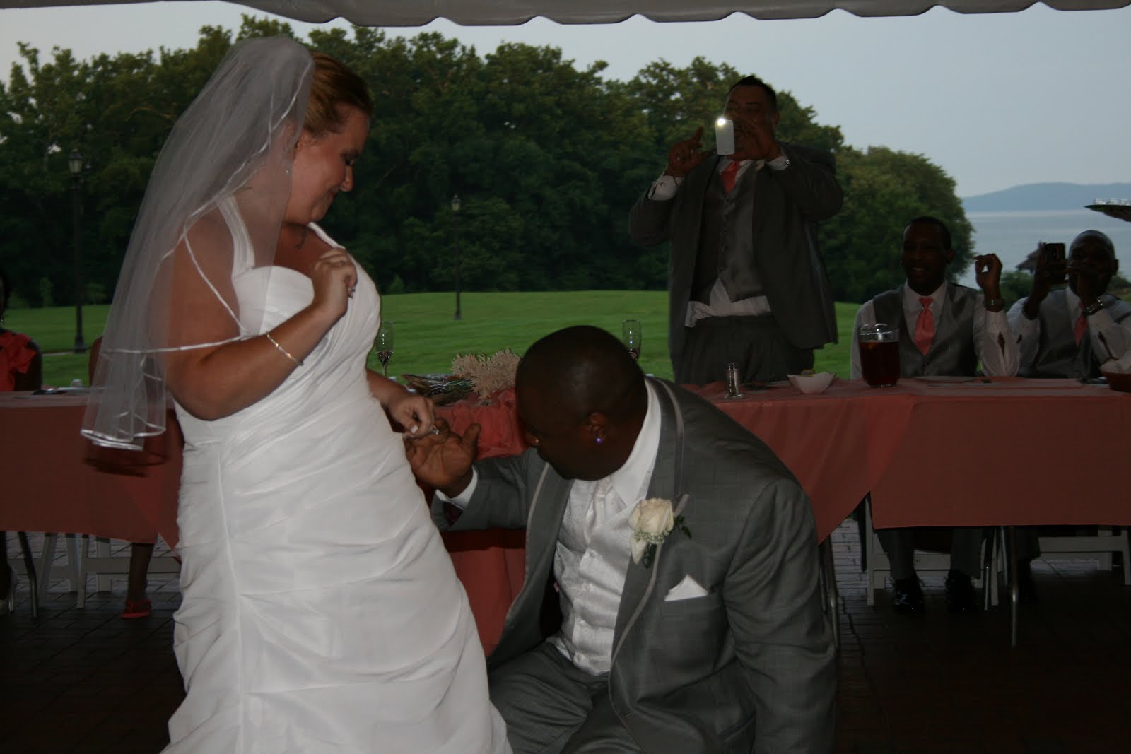 First pic is the ladies and flower girl and the second is a picture from out first dance and my husband doing a dance move he calls "the dip".