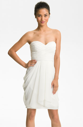 Maggy London strapless, knee-length wedding dress (size 16) for sale. The dress was worn once for a quick civil ceremony in the fall, and has been stored in a smoke/pet-free home since. It has no visible signs of wear. It features criss-cross pleating on top, figure-flattering draped fabric from the waist, soft cups and boning, hook and zipper back closure as well as supportive elastic. Originally purchased from Nordstrom, but no longer available in store or online. The picture is from the Nordstrom website (I was a size 12/14 in regular clothes when I wore this dress). I am asking $150 but I welcome any reasonable offers. I live in Tampa in the Citrus Park area. If you are interested in the dress, please contact me via email kvershall at gmail.com