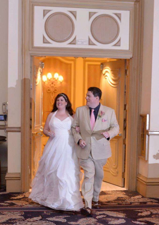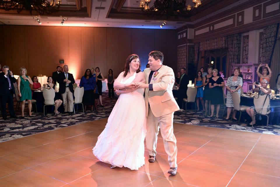Here is a picture of our entrace into the ballroom before dinner. (We were at cocktail hour, but we still made a big entrace). We went directly into our first dance, which was a fast swing dance set to "It's Not Unusual" by Tom Jones. We are not graceful people, but we made it through and everyone loved it. The only downside to having a big performance for your first dance is that you have to stay relatively sober during cocktail hour, ha ha.