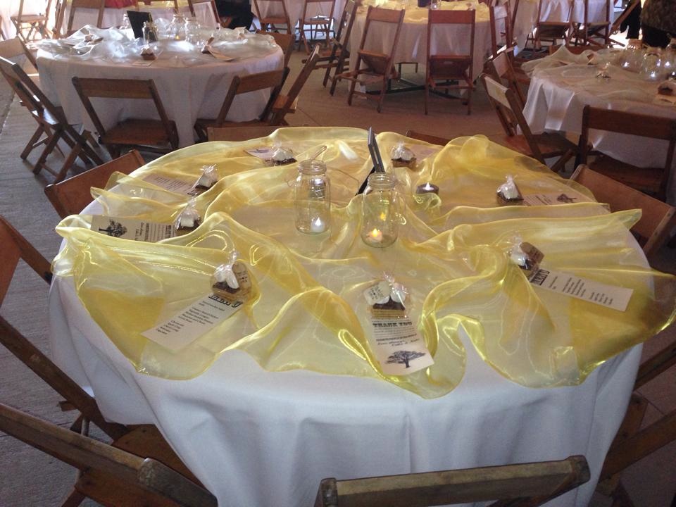 Table overlays 66x66 i think, we used them on a 60inch round table. 14 yellow, 15 gray