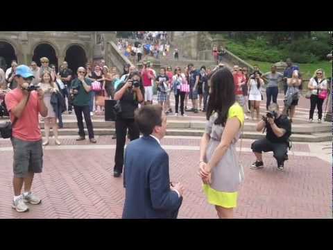 My amazing fiance planned a surprise proposal for me. He had to get a NYC permit to set up speakers and equipment so that a violinist and his friend could play a song he himself wrote the lyrics to about us. He hired dancers to emerge from the crowd and swept me off my feet as we dance in front of the Bethesda Fountain near the Boathouse in Central Park.