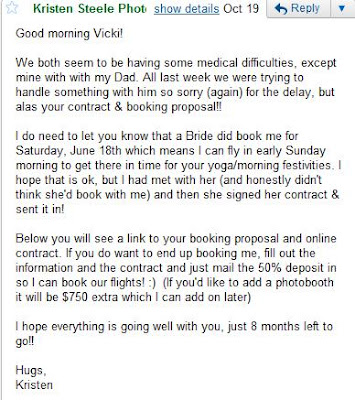Ok, yes, I had yet to sign a contract and had no real rights to her yet, but let's remember I didn't even receive a contract to look over, until after the other (paying) bride had her contract.