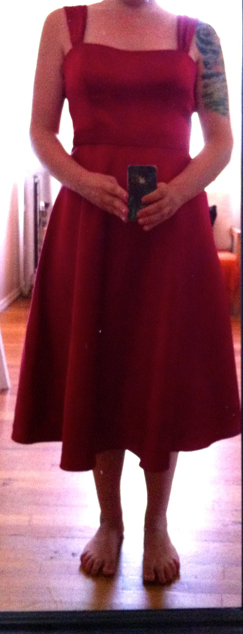 This dress from David's Bridal is in near perfect condition. I wore it as a bridesmaid in my sister's wedding last October. It has been cleaned, and there are no tears or stains. The color is a candy apple red. It fits wonderfully and it lightweight and soft. Size 8 - $60 - and I'll ship it for free!