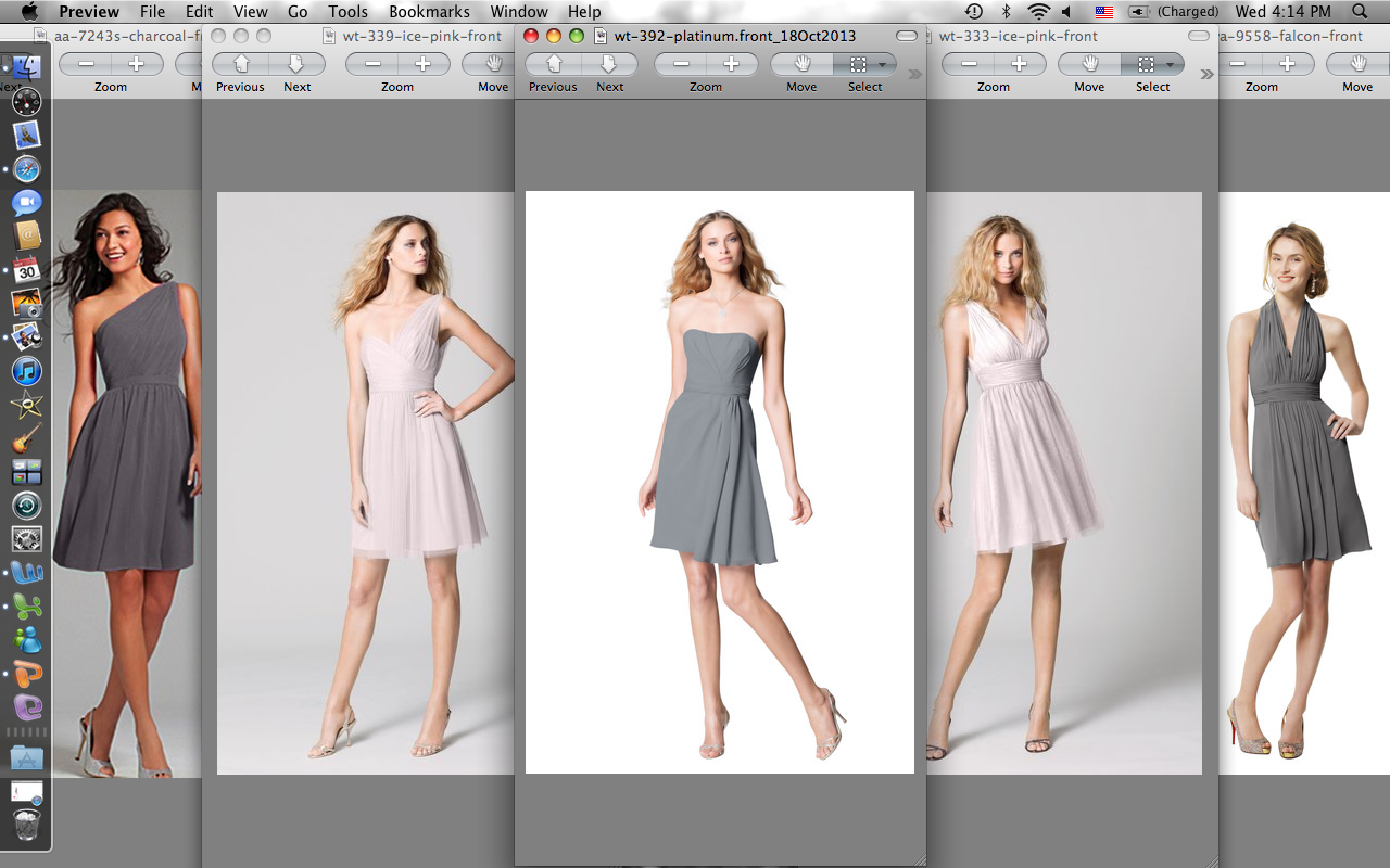 Ok, so I feel like I have been looking at bridesmaid dresses forever! I'm going with 3 of my bridesmaids for the first time next week!! So my question is, does everything in this picture just completely clash if I had one of them in each of these dresses? I think I am at the point where I can't think for myself anymore. Please be honest, and if you do think it looks just terrible then which one of the 5 do you think would be best on its own?