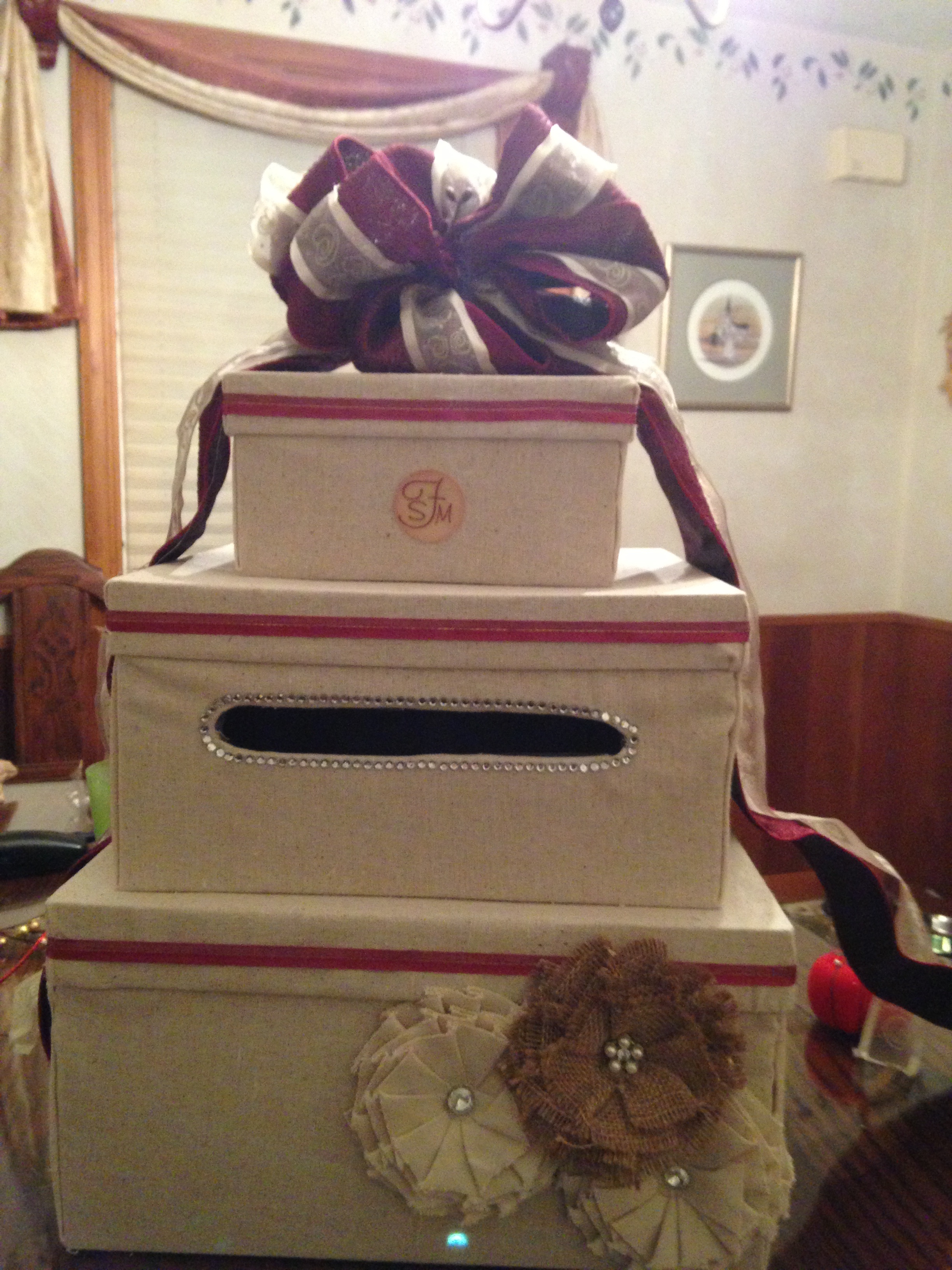 Hey everyone trying to sell my card box. Let me know if your interested $40 =) The circle initial sticker I removed. This box worked wonders for my wedding.