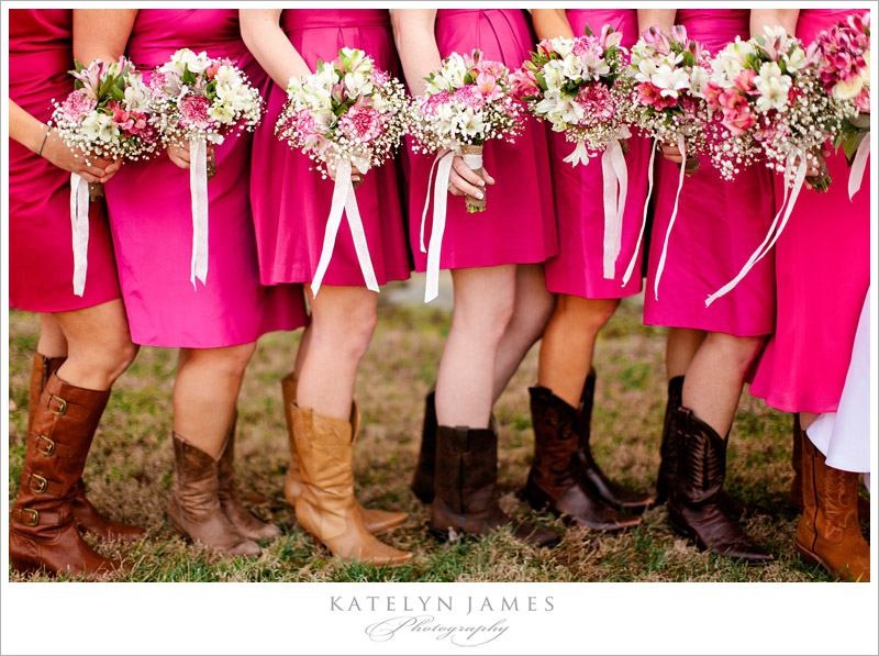 • That's what I've thought too, but I've seen some fake ones that looked real and couldn't tell. We're all wearing brown cowboy boots, different shades and styles, the guys will be in jeans, white dress shirts, grey vest, a pink tie and brown boots, the girls are all in a pink chiffon that hits at their knees :) We're from NKY where you're 20 min from the city but close enough to farms you can hear the cows mooing in the morning lol