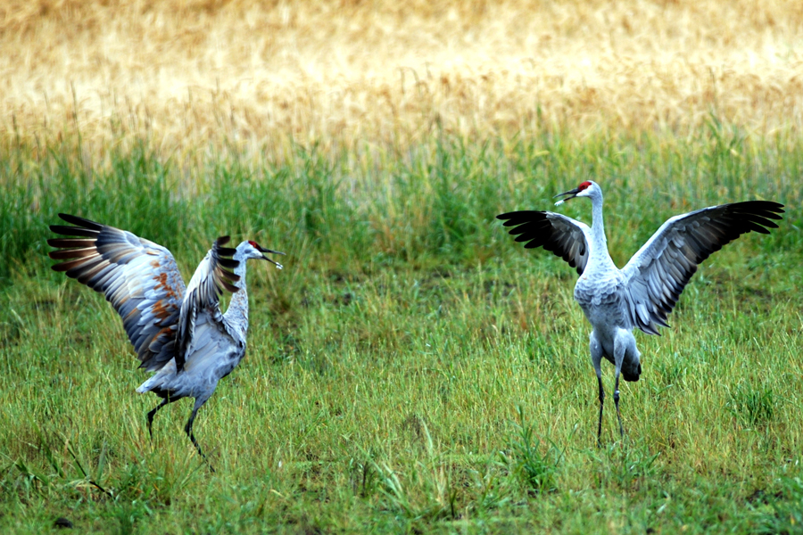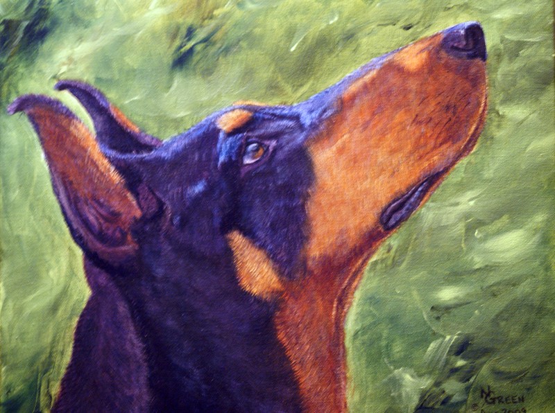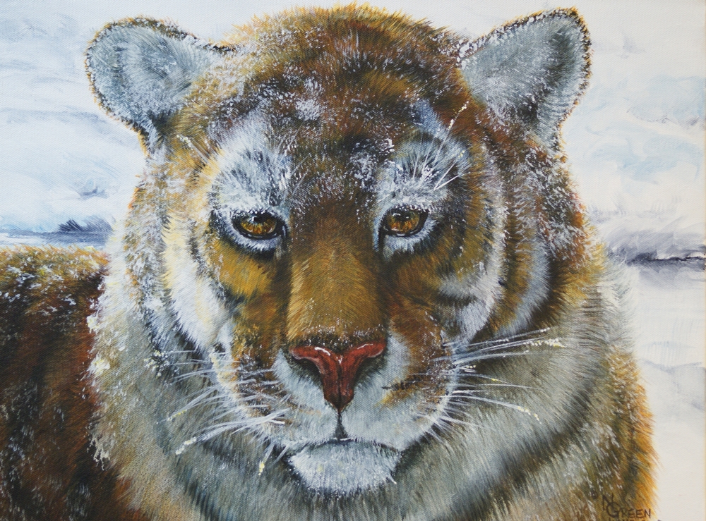 These are both Sandhill Cranes, and ALL of his wildlife photos are taken in the wilderness. A big sea change for me as a wildlife artist-before I met him, I took my wildlife photos in zoos and wildlife parks....the other two are a Siberian tiger (had just finished rolling in snow in -30 weather and loving it...), and a doberman that I watched at an agility trial :)