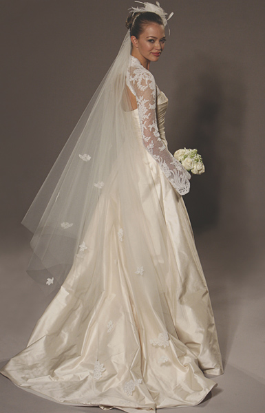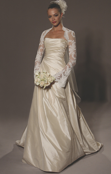 • You can always bustle it after the ceremony. I think the dress is much prettier without the bolero, I hate the sleeves.