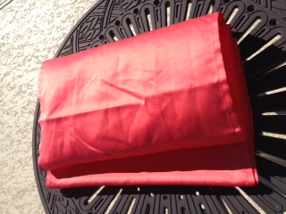 -Satin material. Shiny on one side, a bit more matte on the other