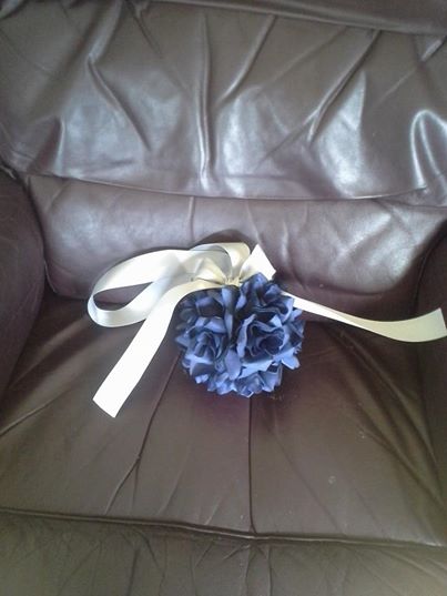 just a few pics, our color will be silver icing with navy flowers, the top part of my dress it has pickups all on the bottom with jewels, my shoes that are being made now and the flower ball my daughter will carry