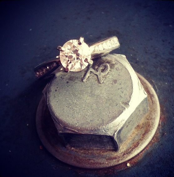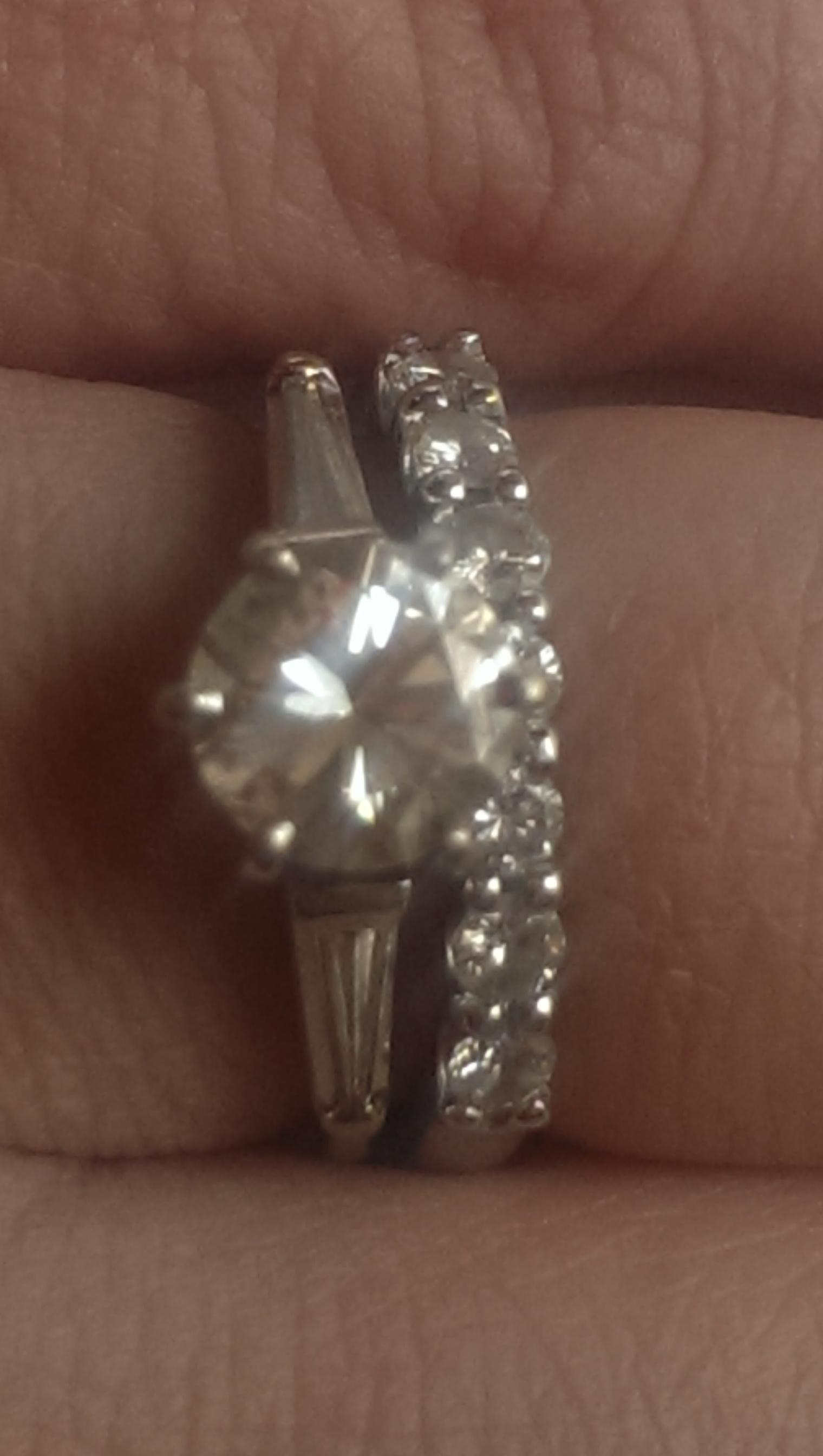 But because my ring tapers, there's an itty bitty tiny gap between the engagement ring and wedding band right at the center. I'm starting to think I made a mistake and should have opted for a ring that has a bit of a peak in the center. Or maybe then it would have run into the prongs. I'm debating if I should go back to the jeweler to see if there is anything they can do to make the rings flush.