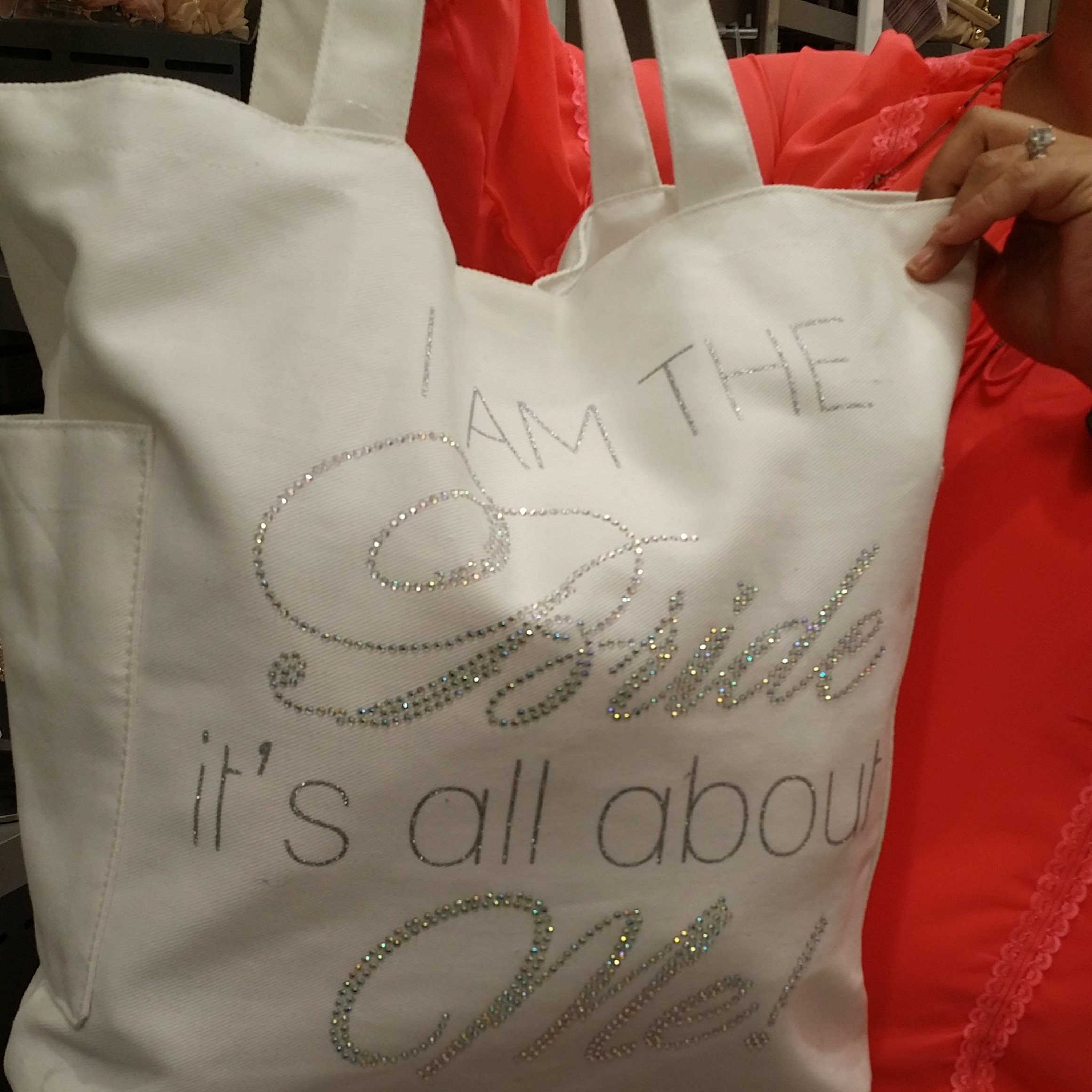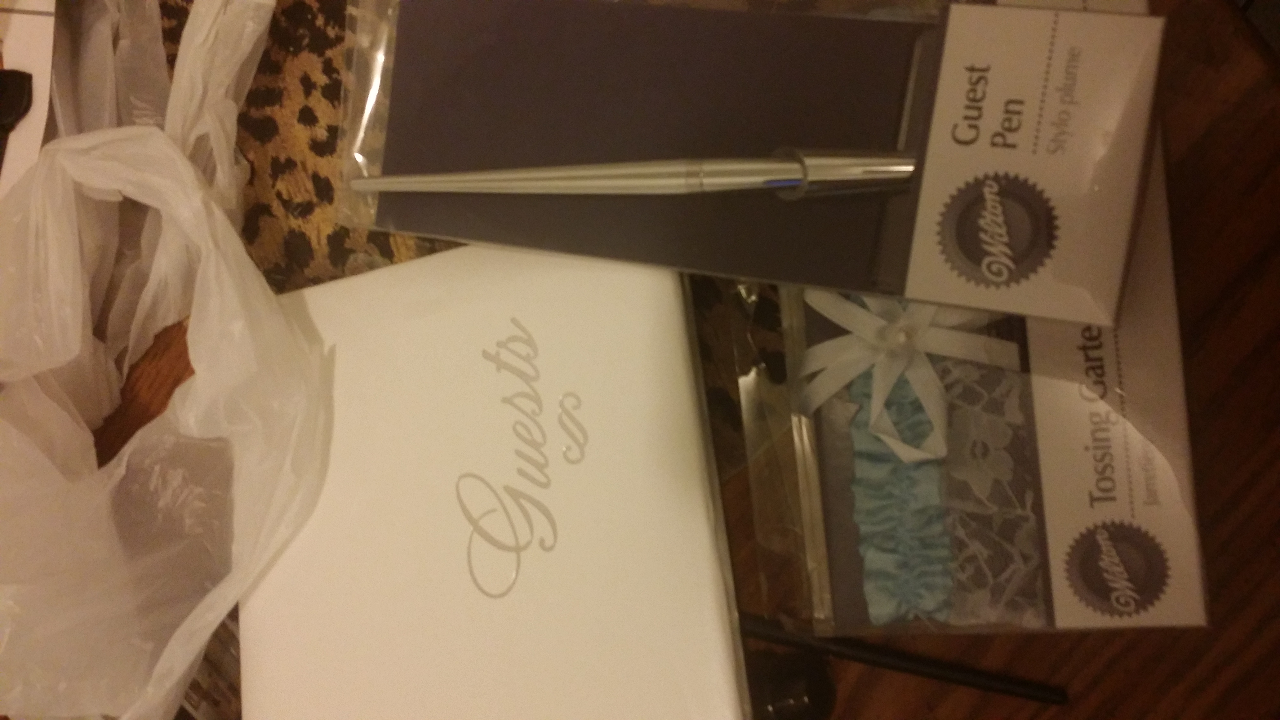 she bought me my garter, my headpiece, bride/groom covers for our champagne glasses, our guest book and this blinged out bridal bag