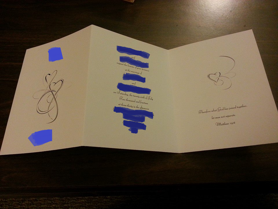 My fiance and I finished stuffing and addressing the invites tonight! Woohoo! As we were doing them I realized I never posted what they look like so here are some pictures. 1 picture is of the whole invite and then the other 2 pictures are of the front and back close up.