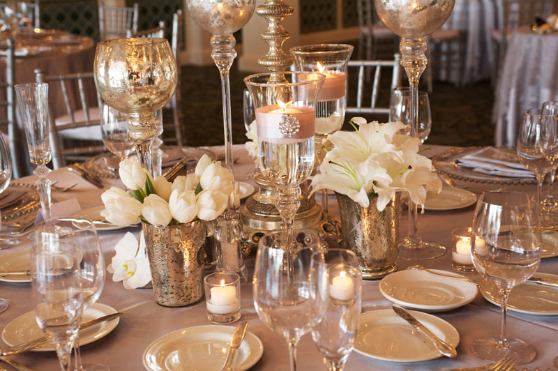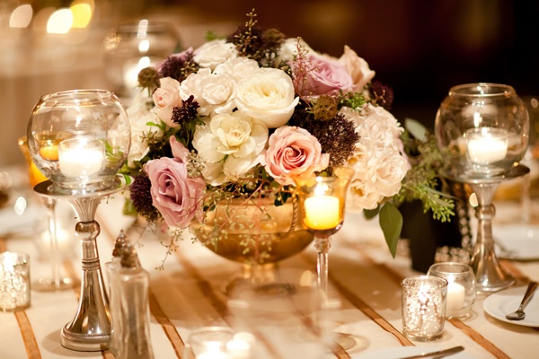 Hi..:) This is the terrace where we'll have the reception. As you can see, it has plants hanging from the ceiling, so my common sense tells me the centerpieces should be low, but other than that I'm coming blank. I was thinking metal and crystal vases with season flowers for a vintage feel, and lots of little candles,(like the pic) but I don't really know. And what about the ceiling? The reception will start at 9PM, so candelabra? lamps?